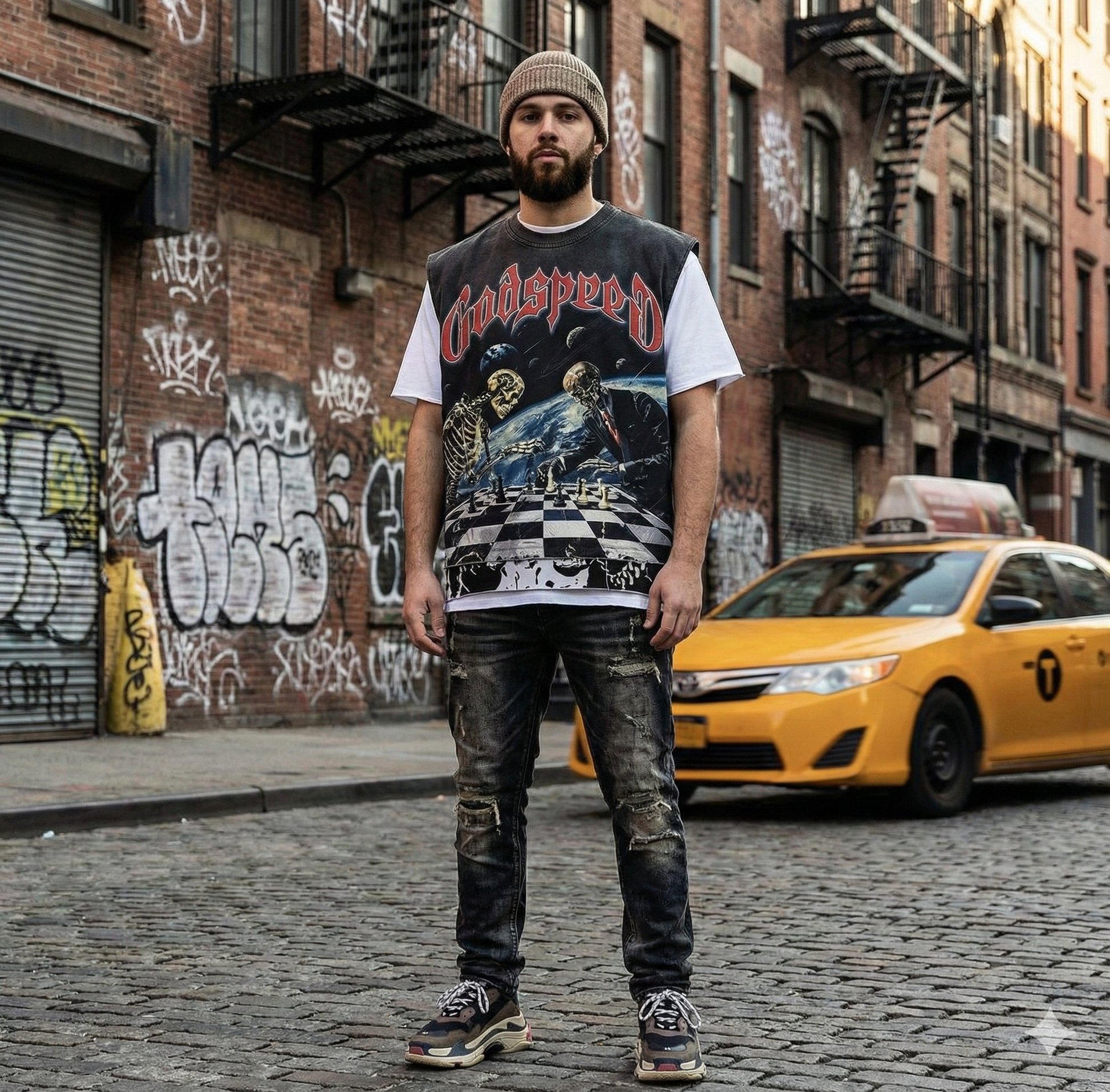 The GODSPEED CHECK MATE SLEEVELESS T SHIRT redefines streetwear with a striking checkered graphic that embodies boldness and confidence. Designed for dynamic movement, this sleeveless tee combines lightweight comfort with durable fabric, making it ideal for active lifestyles and heat-ready environments. Its sleek cut allows maximum mobility while maintaining a sharp, modern look. Perfect for layering or wearing solo, this T-shirt merges style with functionality, ensuring you stay cool and powerful in every situation. Elevate your wardrobe with a piece that balances street edge and practical design seamlessly.